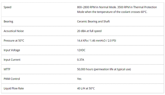 يتميز Fractal Design Celcius + S24 Prisma بمضخة من الجيل السادس من Asetek مع PCB مخصص من Fractal Design. فيما يلي بعض البيانات الفنية للمضخة: